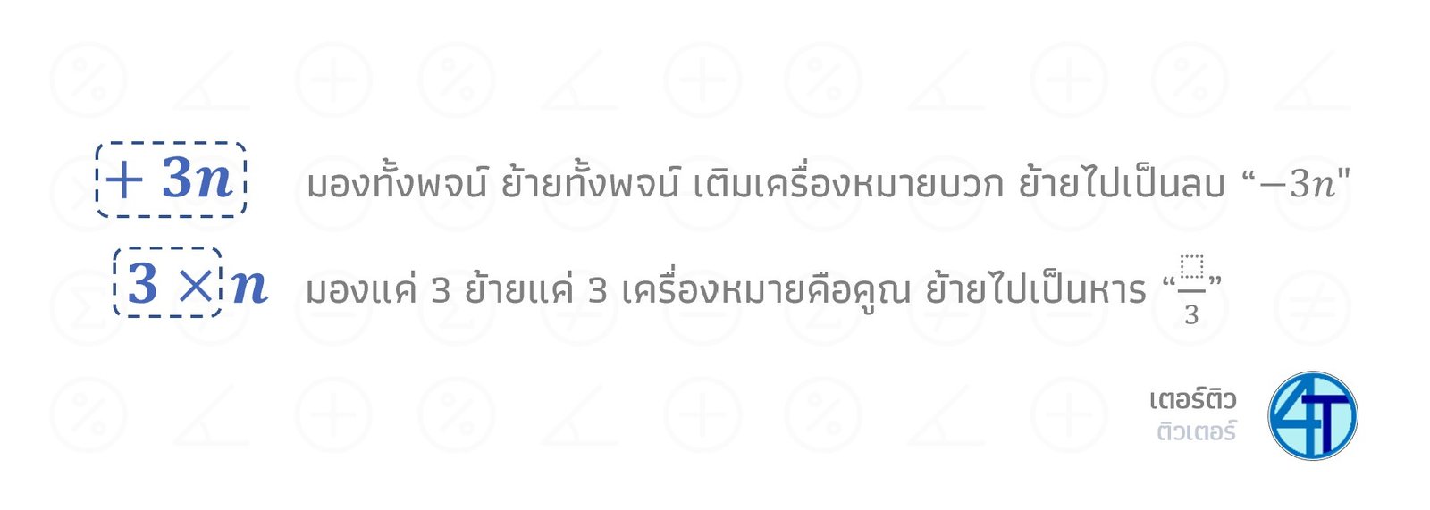 เมื่อเราอยากกำจัดตัวอะไร ให้ใช้เครื่องหมายตรงข้ามกระทำทั้งสองข้างของสมการ