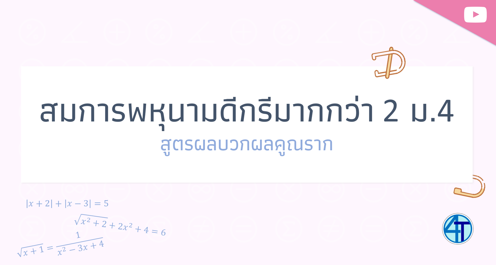 อย่าลืมเนื้อหา ม.ต้น ว่า การแก้สมการพหุนามดีกรีสอง ถ้าเราแยกตัวประกอบไม่ลงตัว เราใช้สูตรได้คือ